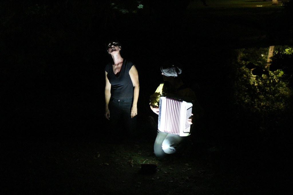 Les 11 et 12 septembre nous étions en compagnie d’Alexandra Maire, comédienne, embusquées dans les jardins d’Épernay pour Histoires d’un soir, une série de visites nocturnes des lieux forts du patrimoine sparnassien ; agrémentées donc de chansons et de textes choisis par nos soins.